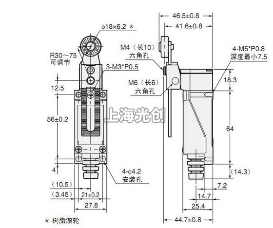 声明:适用交流AC 380V,直流 DC 220V。本页D4V-8108Z行程开关的接线图、外形尺寸及文字等信息仅供参考用,如有改动不另行通知。订购前请来电咨询,我们有专业人士为您选型。 另外可根据客户要求,订制非标产品及欧姆龙、天得等国内外知名品牌的替代型产品,欢迎来电订购,电话021-31261887。